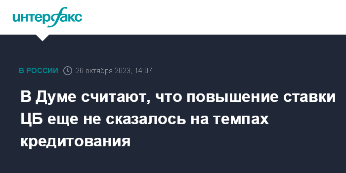 В Думе считают, что повышение ставки ЦБ еще не сказалось на темпах кредитования