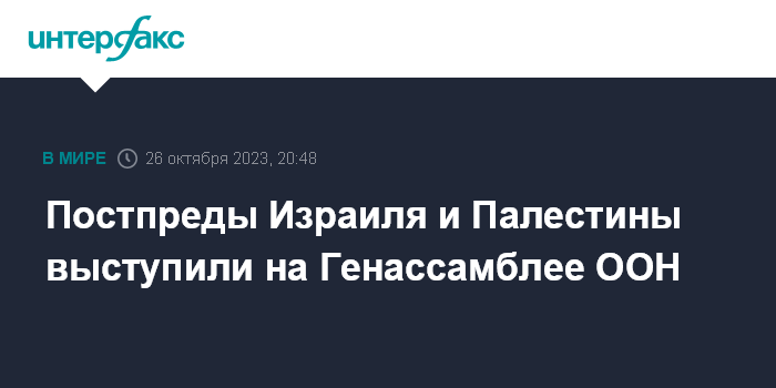 Москва. 26 октября. INTERFAX.RU - На спецсессии Генассамблеи ООН постпред Палестины обвинил Запад в двойных стандартах и призвал спасти мирных жителей Газы, а постпред Израиля заявил, что идет война не с палестинцами, а с ХАМАС.