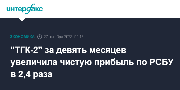 "ТГК-2" за девять месяцев увеличила чистую прибыль по РСБУ в 2,4 раза