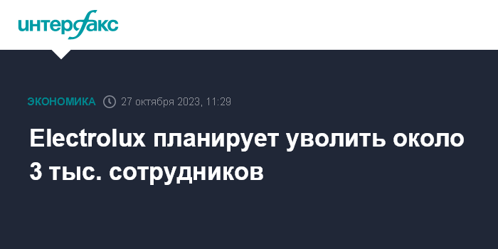 Москва. 27 октября. INTERFAX.RU - Шведская Electrolux AB, являющаяся одним из крупнейших мировых производителей бытовой техники, в третьем квартале 2023 года вернулась к чистой прибыли, однако снизила выручку на 5%; также компания объявила о планах уволить около 3 тысяч сотрудников.
