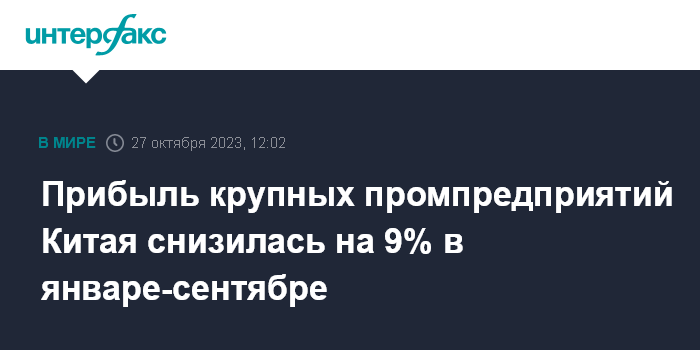 Однако в сентябре совокупная прибыль крупных промышленных компаний КНР повысилась на 11,9%.