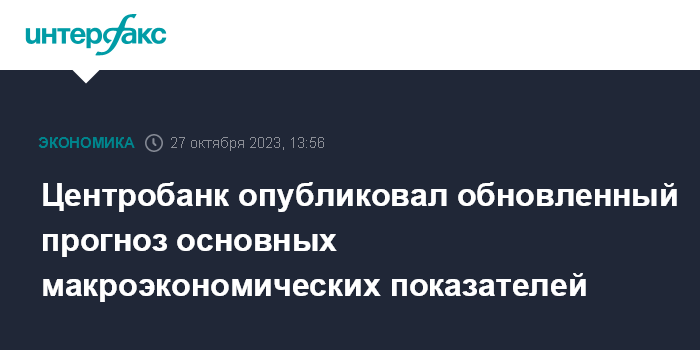 Москва. 27 октября. INTERFAX.RU - Банк России в пятницу опубликовал обновленный среднесрочный прогноз основных макроэкономических показателей.