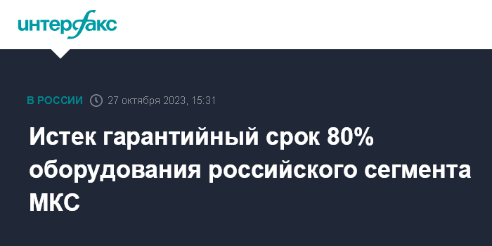 "К сожалению, она (МКС - ИФ) превысила все допустимые сроки существования - 80% оборудования российского находится за пределами гарантийных сроков существования", - сказал он.