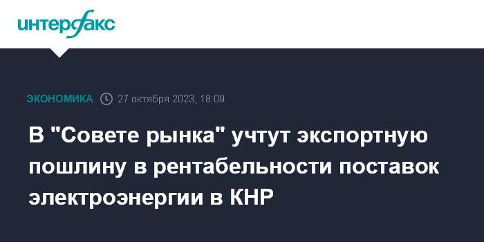 В "Совете рынка" учтут экспортную пошлину в рентабельности поставок электроэнергии в КНР