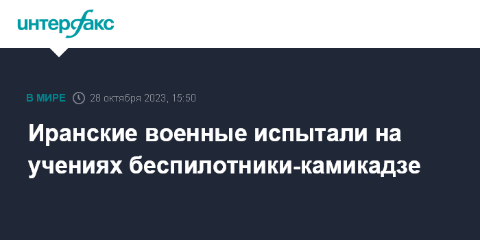 Москва. 28 октября. INTERFAX.RU - Сухопутные войска Ирана в ходе учений "Эктэдар 1402" в провинции Исфахан успешно применили беспилотники-камикадзе против наземных целей, сообщает "Тасним".