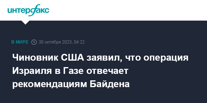 Чиновник США заявил, что операция Израиля в Газе отвечает рекомендациям Байдена