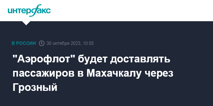 "Аэрофлот" будет доставлять пассажиров в Махачкалу через Грозный