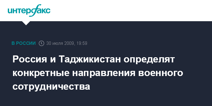 Душанбе. 30 июля. INTERFAX.RU - Президенты России и Таджикистана в ходе переговоров в четверг в Душанбе поручили министрам двух стран проработать предложения о конкретных направлениях военного сотрудничества, включая вопросы функционирования 201-й российской военной базы.