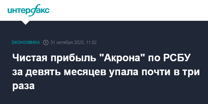 Чистая прибыль "Акрона" по РСБУ за девять месяцев упала почти в три раза