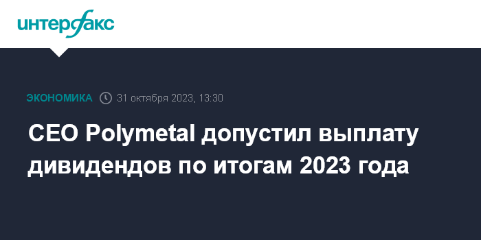 CEO Polymetal допустил выплату дивидендов по итогам 2023 года