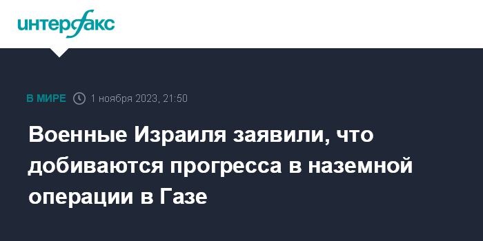 Военные Израиля заявили, что добиваются прогресса в наземной операции в Газе