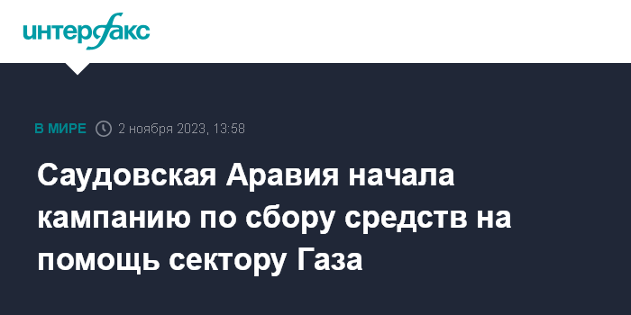 Москва. 2 ноября. INTERFAX.RU - Саудовская Аравия запустила кампанию по сбору средств для палестинцев в секторе Газа, сообщает в четверг Associated Press.