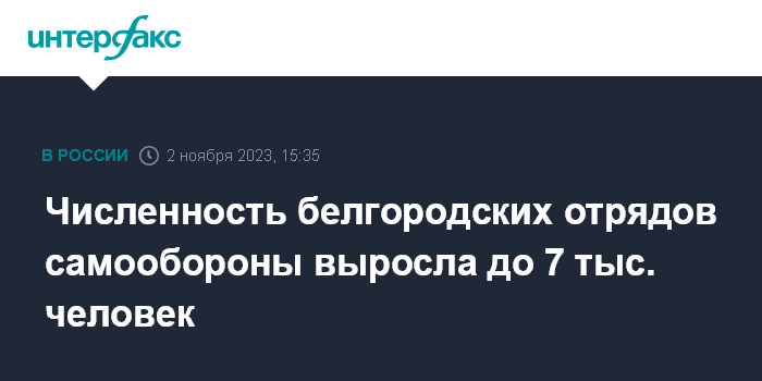 По данным на начало августа 2023 года, в Белгородской области было набрано восемь батальонов теробороны. В ее рядах числились порядка 3 тыс. человек. В конце августа Гладков объявил о начале формирования второго полка самообороны.