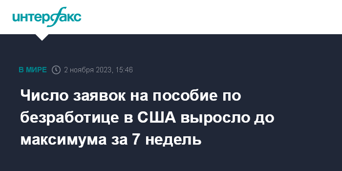 Число заявок на пособие по безработице в США выросло до максимума за 7 недель