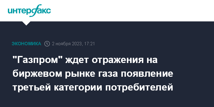 "Газпром" ждет отражения на биржевом рынке газа появление третьей категории потребителей
