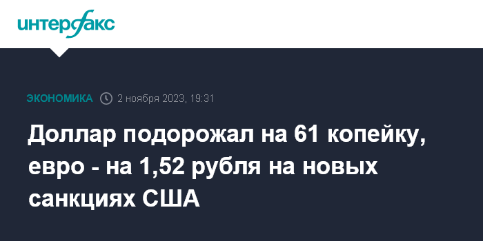 Доллар подорожал на 61 копейку, евро - на 1,52 рубля на новых санкциях США