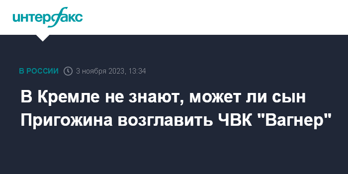 Его также попросили прокомментировать сообщения, что группу "Вагнер" может возглавить сын Евгения Пригожина Павел.