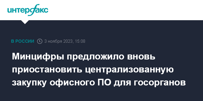 Москва. 3 ноября. INTERFAX.RU - Централизованная закупка Минцифры РФ офисного и антивирусного программного обеспечения для нужд федеральных госорганов может быть приостановлена в 2024 году. Проект соответствующего правительственного постановления опубликован министерством на портале проектов нормативных правовых актов.