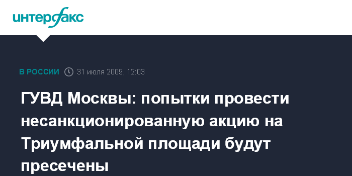 ГУВД Москвы: попытки провести несанкционированную акцию на Триумфальной площади будут пресечены
