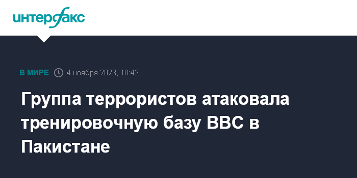 Москва. 4 ноября. INTERFAX.RU - Пакистанским военным удалось нейтрализовать группу террористов, пытавшихся атаковать базу ВВС "Мианвали" в центральной части страны.