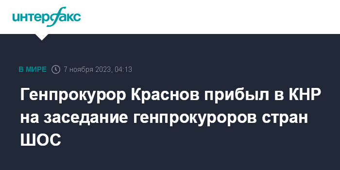 Генпрокурор Краснов прибыл в КНР на заседание генпрокуроров стран ШОС