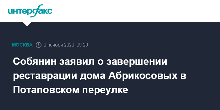 Собянин заявил о завершении реставрации дома Абрикосовых в Потаповском переулке
