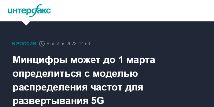 Москва. 8 ноября. INTERFAX.RU - Минцифры РФ до 1 марта 2024 года необходимо определиться с моделью высвобождения частот для развития 5G в стране, сообщил глава министерства Максут Шадаев журналистам.
