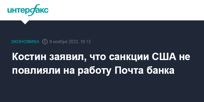 Костин заявил, что санкции США не повлияли на работу Почта банка