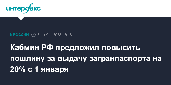 Кабмин РФ предложил повысить пошлину за выдачу загранпаспорта на 20% с 1 января