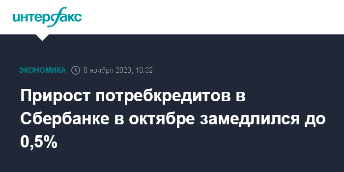 Прирост потребкредитов в Сбербанке в октябре замедлился до 0,5%