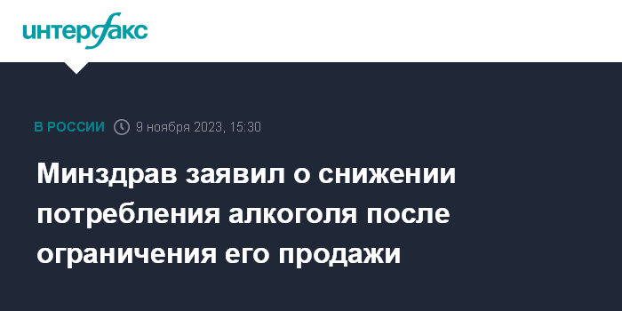 Москва. 9 ноября. INTERFAX.RU - Введенные в России ограничения на продажу алкоголя привели к снижению его потребления в два раза, сообщила директор ННЦ наркологии - филиала НМИЦ психиатрии и наркологии им. В.П. Сербского Минздрава России Татьяна Клименко.