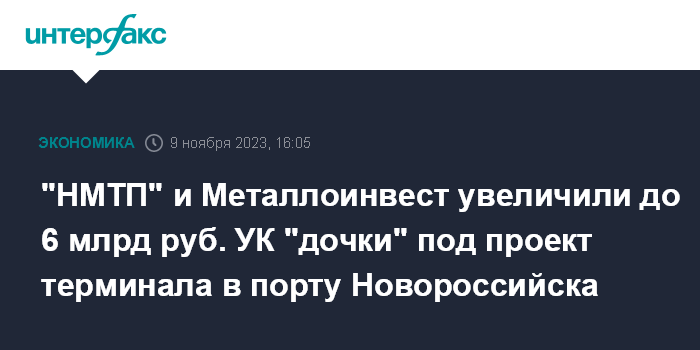 "НМТП" и Металлоинвест увеличили до 6 млрд руб. УК "дочки" под проект терминала в порту Новороссийска