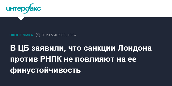 В ЦБ заявили, что санкции Лондона против РНПК не повлияют на ее финустойчивость