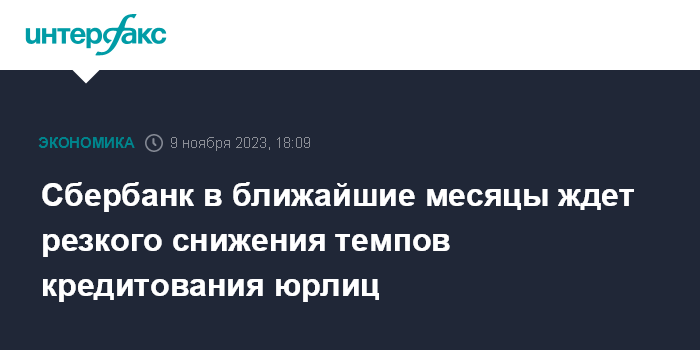 Сбербанк в ближайшие месяцы ждет резкого снижения темпов кредитования юрлиц