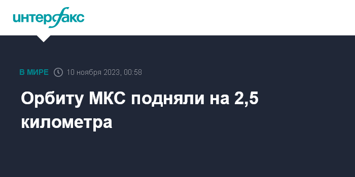 Москва. 10 ноября. INTERFAX.RU - Орбиту Международной космической станции (МКС) подняли на 2,5 км для запуска грузового корабля "Прогресс МС-25" в декабре 2023 года, сообщает "Роскосмос" в пятницу.