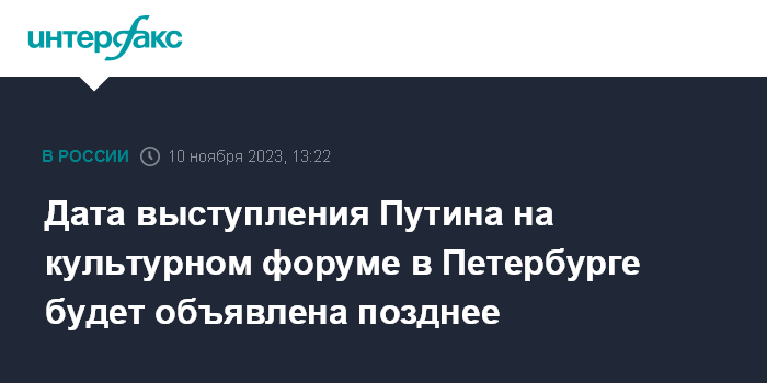 Дата выступления Путина на культурном форуме в Петербурге будет объявлена позднее