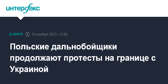 Москва. 10 ноября. INTERFAX.RU - Польские перевозчики протестуют на трех КПП на границе с Украиной, требуя от властей ограничить конкуренцию со стороны украинских фирм, сообщает польский экономический портал Nowy Przemysl.