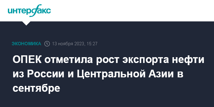 ОПЕК отметила рост экспорта нефти из России и Центральной Азии в сентябре