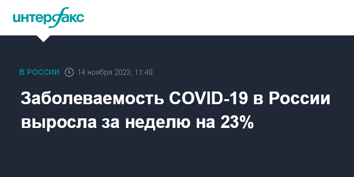Заболеваемость COVID-19 в России выросла за неделю на 23%