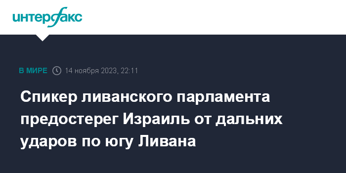 Спикер ливанского парламента предостерег Израиль от дальних ударов по югу Ливана
