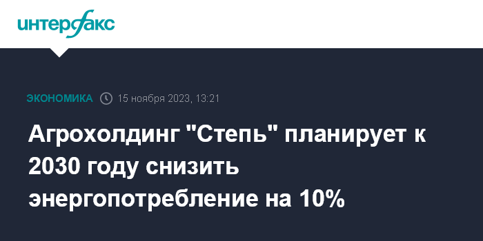 Агрохолдинг "Степь" планирует к 2030 году снизить энергопотребление на 10%