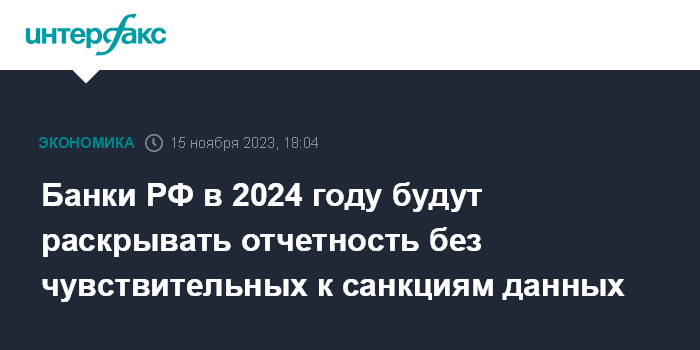 Банки РФ в 2024 году будут раскрывать отчетность без чувствительных к санкциям данных