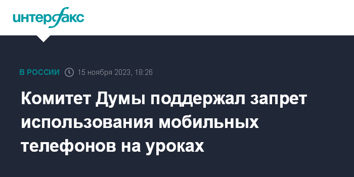 Москва. 15 ноября. INTERFAX.RU - Комитет Госдумы по просвещению рекомендовал нижней палате парламента принять в первом чтении законопроект, запрещающий использовать мобильные телефоны в школах во время уроков за исключением особых случаев.