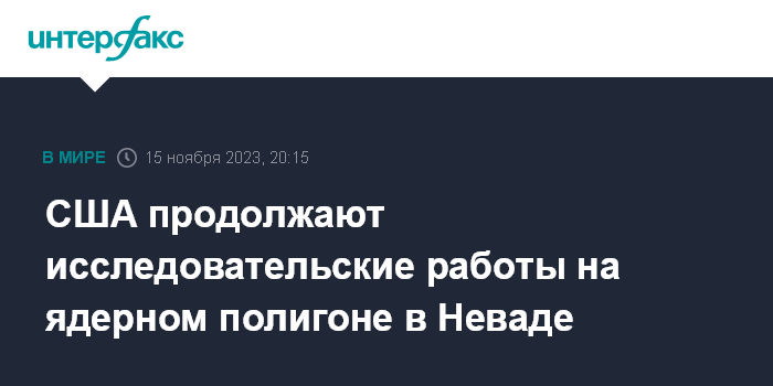 Москва. 15 ноября. INTERFAX.RU - На американском ядерном полигоне продолжают проводиться исследовательские работы, сообщила глава Национального управления по ядерной безопасности (NNSA) Джилл Хруби в интервью Ассоциации по контролю за вооружениями.