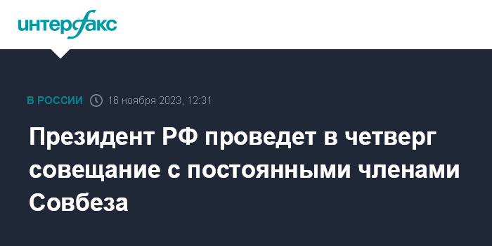 Москва. 16 ноября. INTERFAX.RU - Президент РФ Владимир Путин в четверг проведет оперативное совещание с постоянными членами Совета безопасности страны, сообщил пресс-секретарь президента Дмитрий Песков.