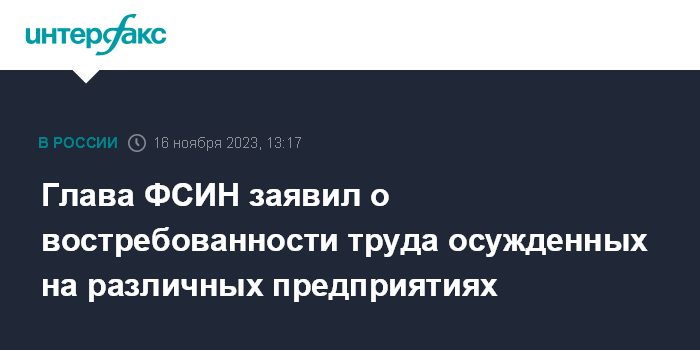 Глава ФСИН заявил о востребованности труда осужденных на различных предприятиях