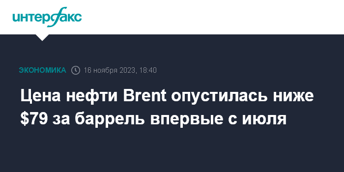 Цена нефти Brent опустилась ниже $79 за баррель впервые с июля