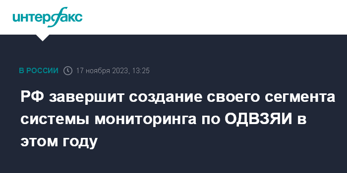 РФ завершит создание своего сегмента системы мониторинга по ОДВЗЯИ в этом году