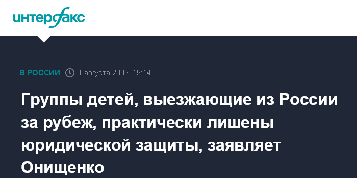 Группы детей, выезжающие из России за рубеж, практически лишены юридической защиты, заявляет Онищенко