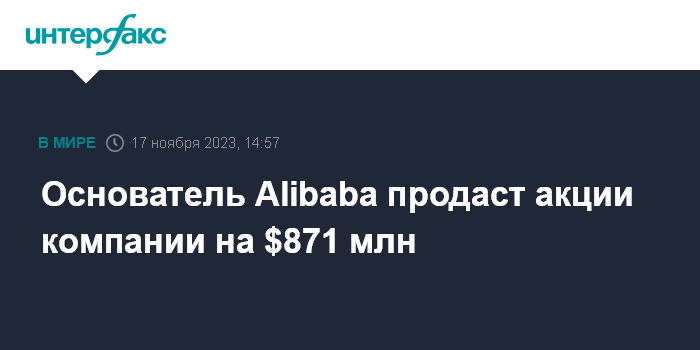Москва. 17 ноября. INTERFAX.RU - Семейный траст основателя Alibaba Group Holding Джека Ма продаст 10 млн ADR компании на общую сумму порядка $871 млн.